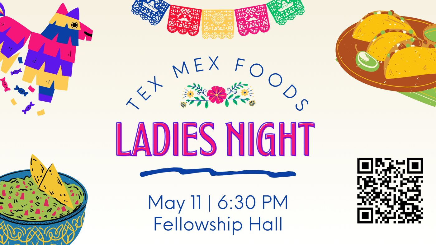 Join us Monday, May 11th at 6:30pm in the Fellowship Hall for our last Ladies Night of the school year! We will be celebrating the incoming summer months with Tex-Mex foods!